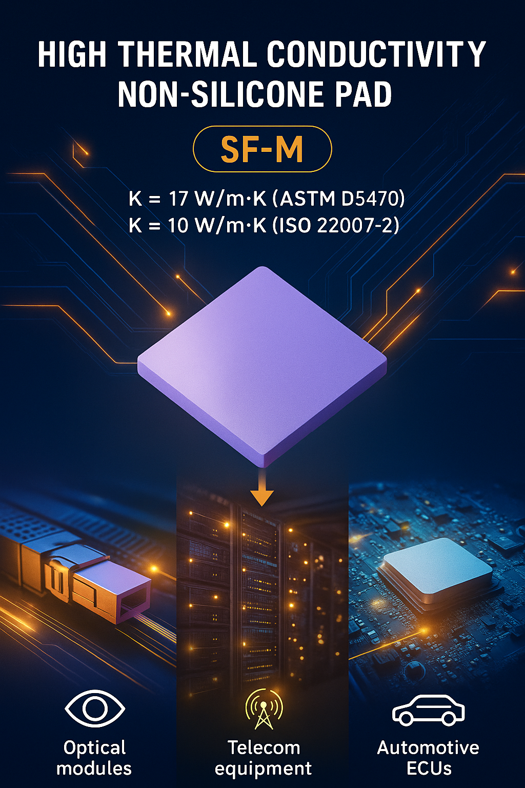 Offering a wide range of thermal conductivity from 1.5 to 14+ W/m·K, these pads feature high softness, low stress, and excellent resilience. They effectively fill micro-voids between heat-generating components and heat sinks to minimize interfacial thermal resistance. The entire series features D3~D20 non-detectable high purity , making them ideal for AI servers, laptops, and networking equipment to ensure long-term, stable thermal performance.